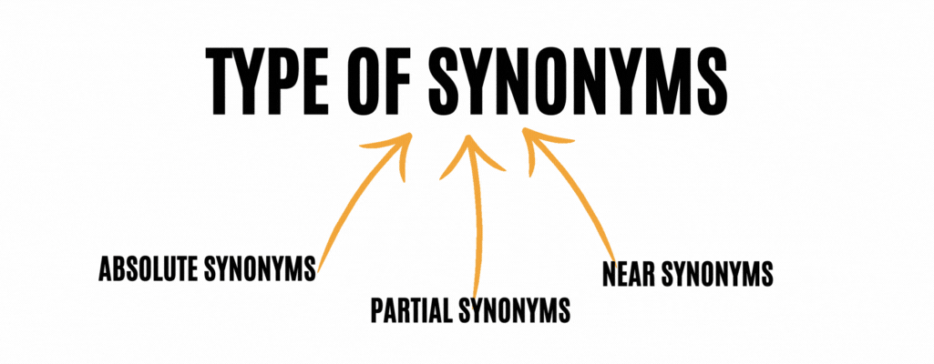 Absolute synonyms, Partial synonyms, and Near synonyms.
