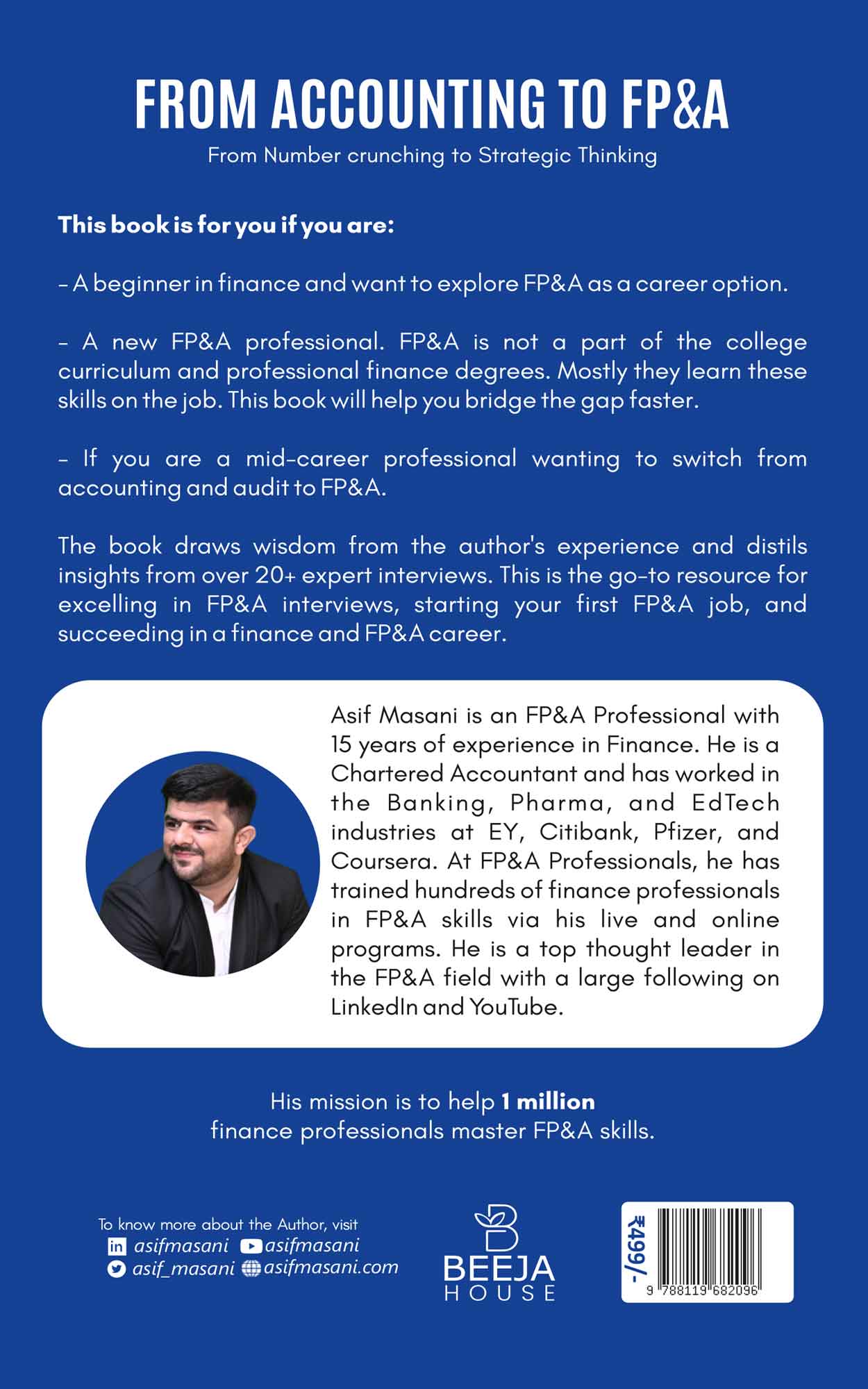 The book draws wisdom from the author's experience and distils insights from over 20+ expert interviews. This is the go-to resource for excelling in FP&A interviews, starting your first FP&A job, and succeeding in a finance and FP&A career.